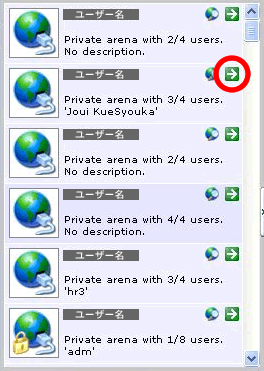 プレイヤーが作った部屋が表示されます。